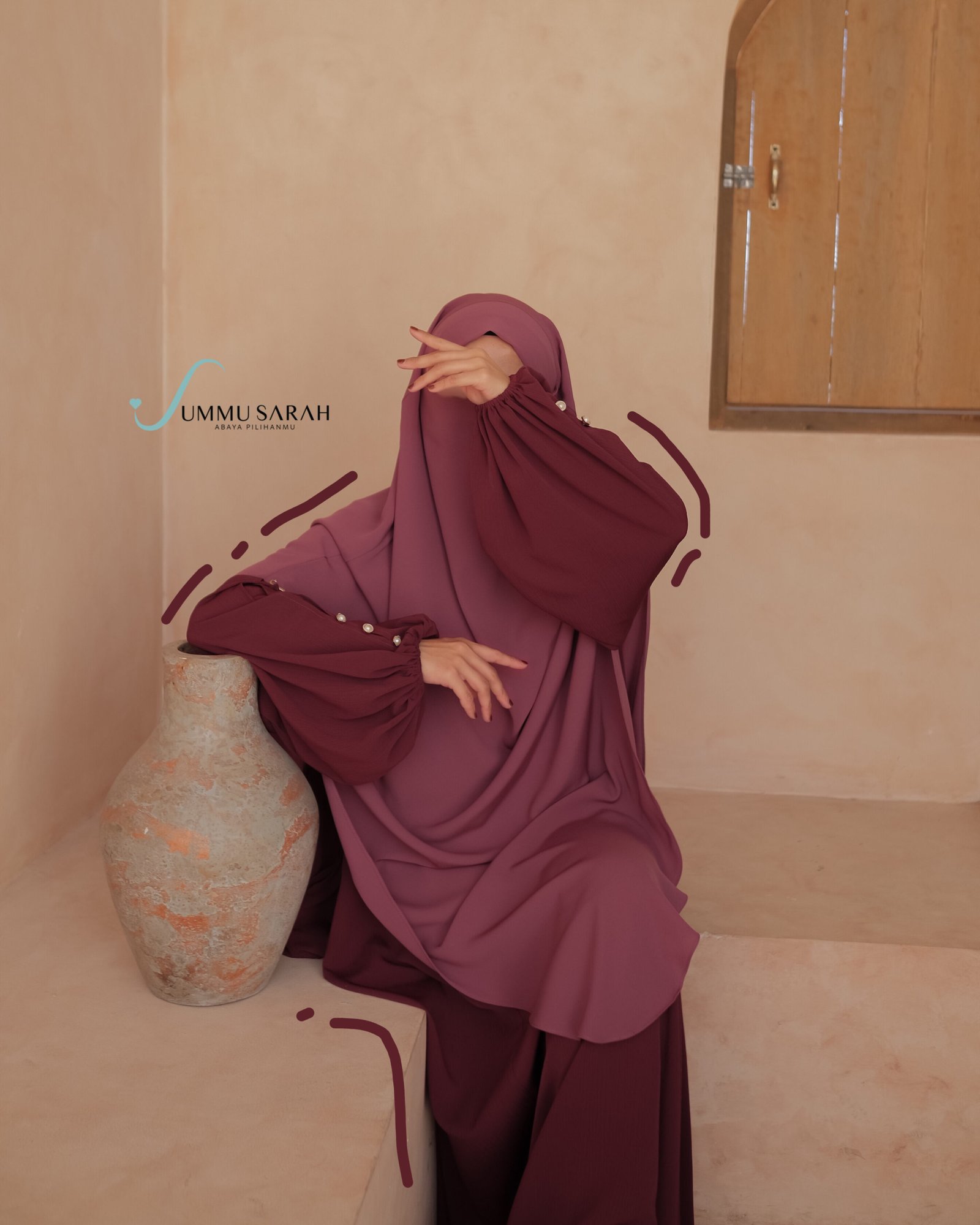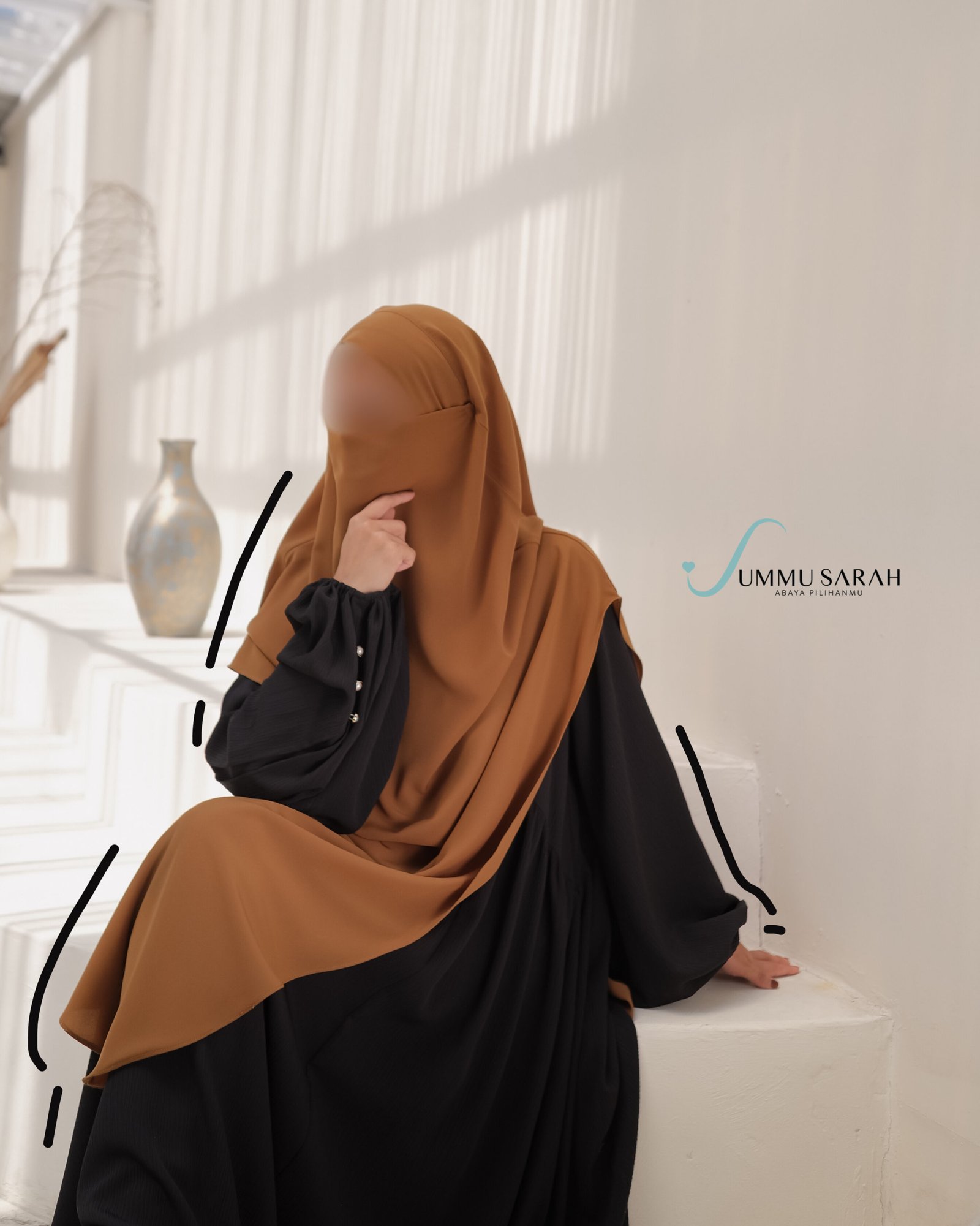 French Khimar bagian pad menggunakan detail tali dan bagian niqab memakai karet